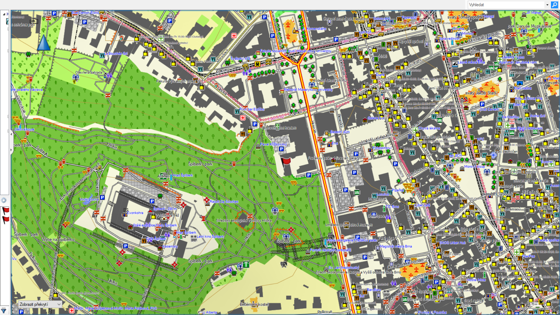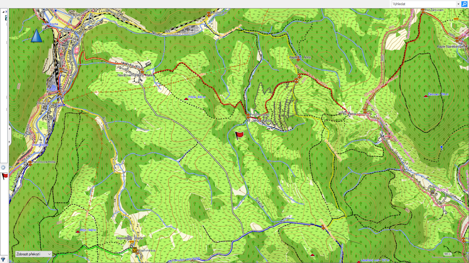 - vrstevnice včetně výškových dat (funguje výpočet výškového profilu trasy)
